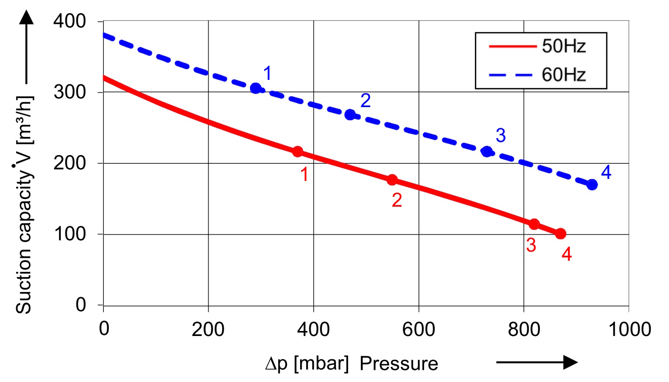 2 stufiger Hochdruck-Seitenkanalverdichter mit folgenden technischen Spezifikationen bei 50 Hz: