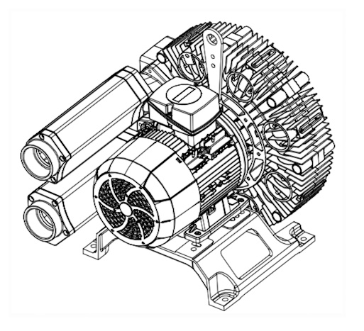 1 stufiger Hochdruck-Seitenkanalverdichter mit folgenden technischen Spezifikationen bei 50 Hz: