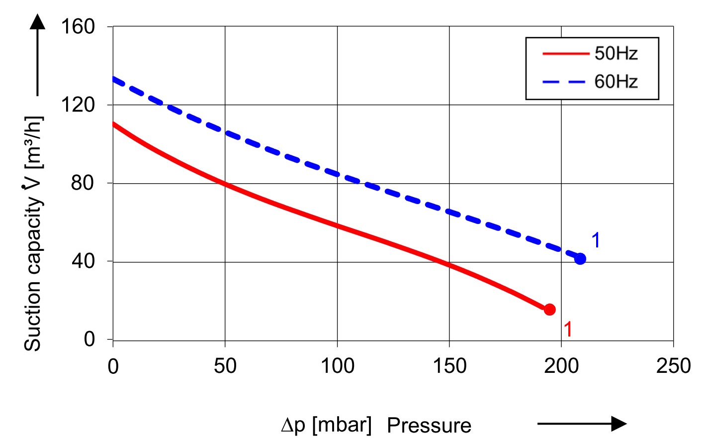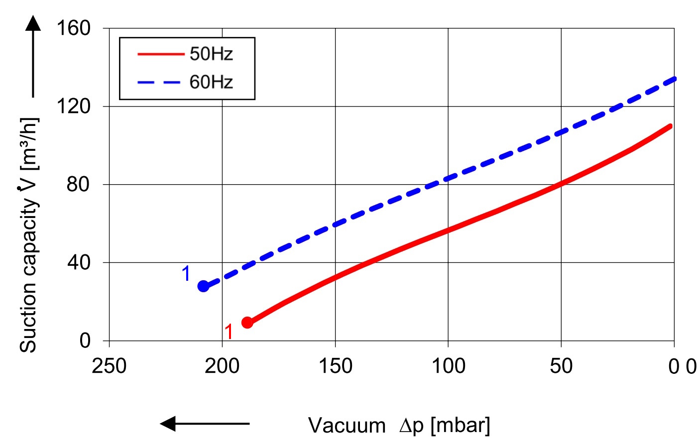 1 stufiger Seitenkanalverdichter mit folgenden technischen Spezifikationen bei 50 Hz: