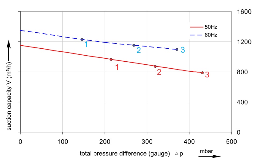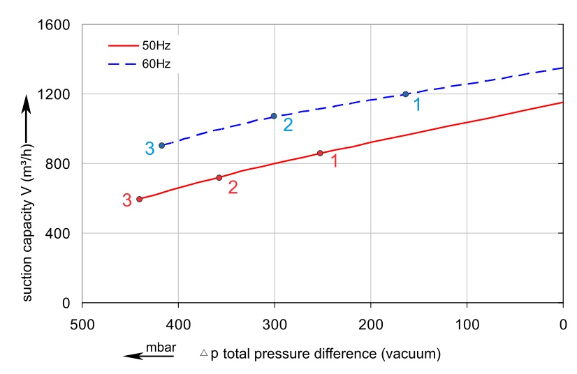 2 stufiger Seitenkanalverdichter mit folgenden technischen Spezifikationen bei 50 Hz: