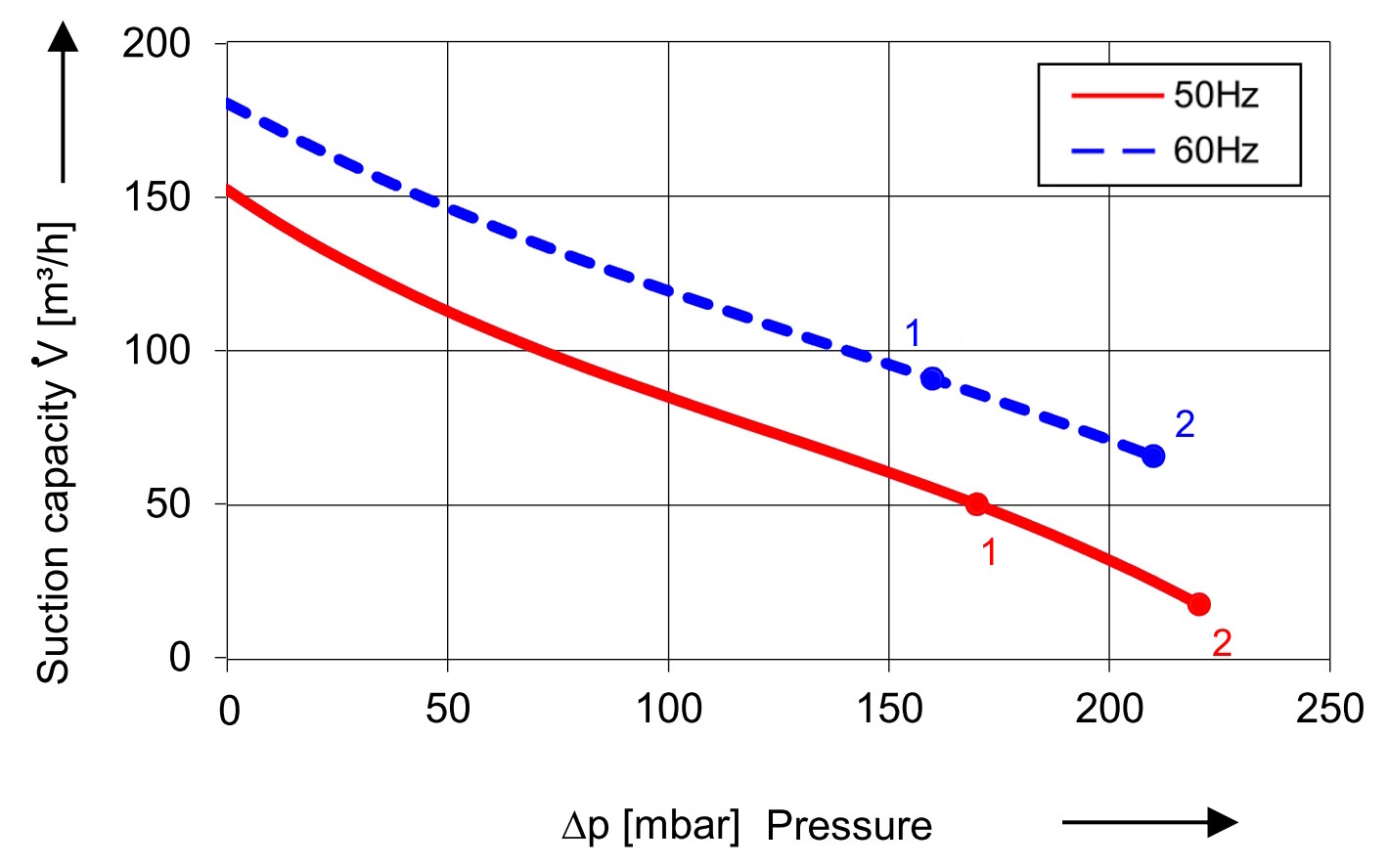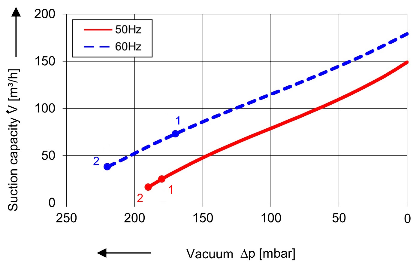 1 stufiger Seitenkanalverdichter mit folgenden technischen Spezifikationen bei 50 Hz: