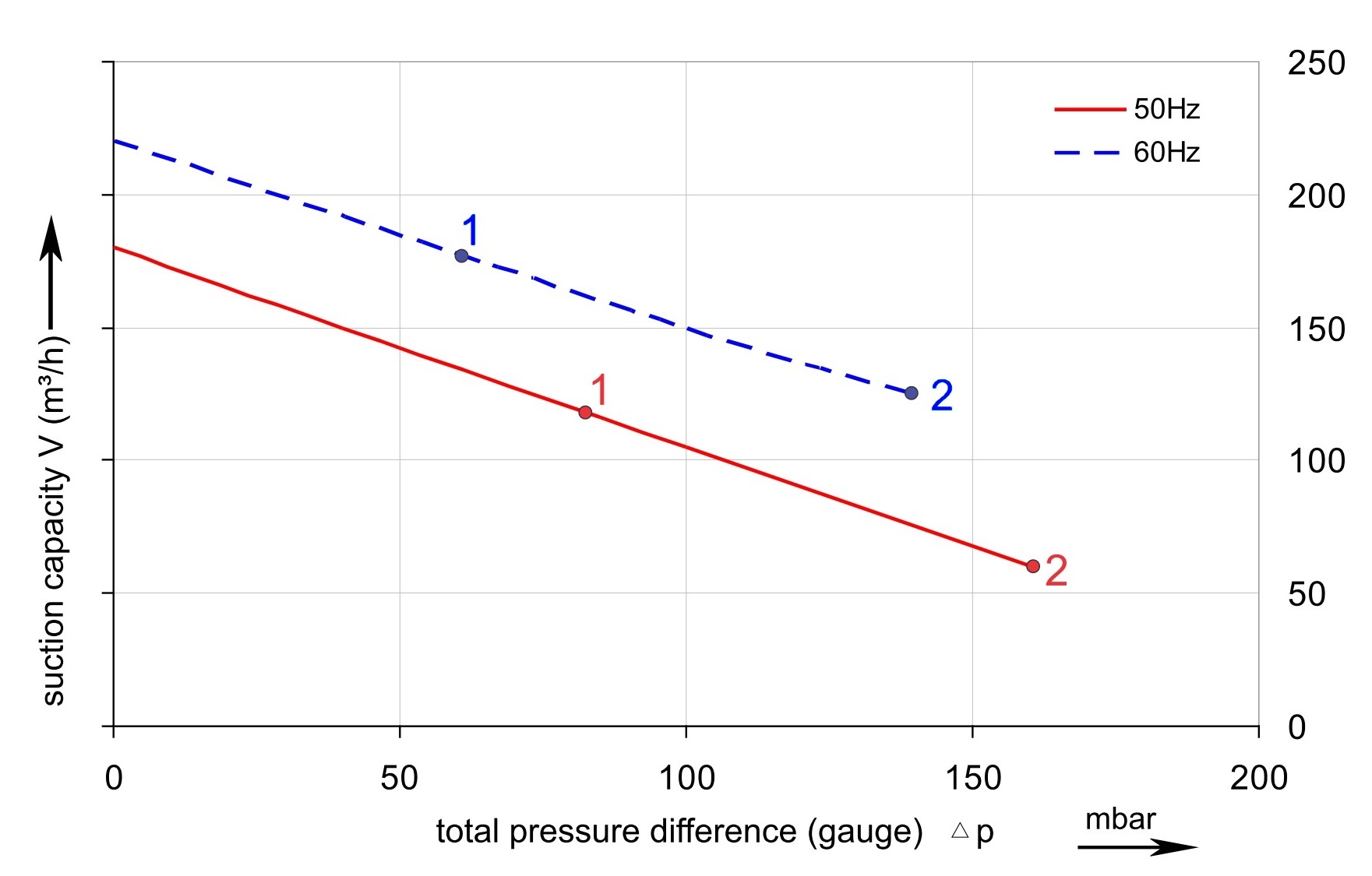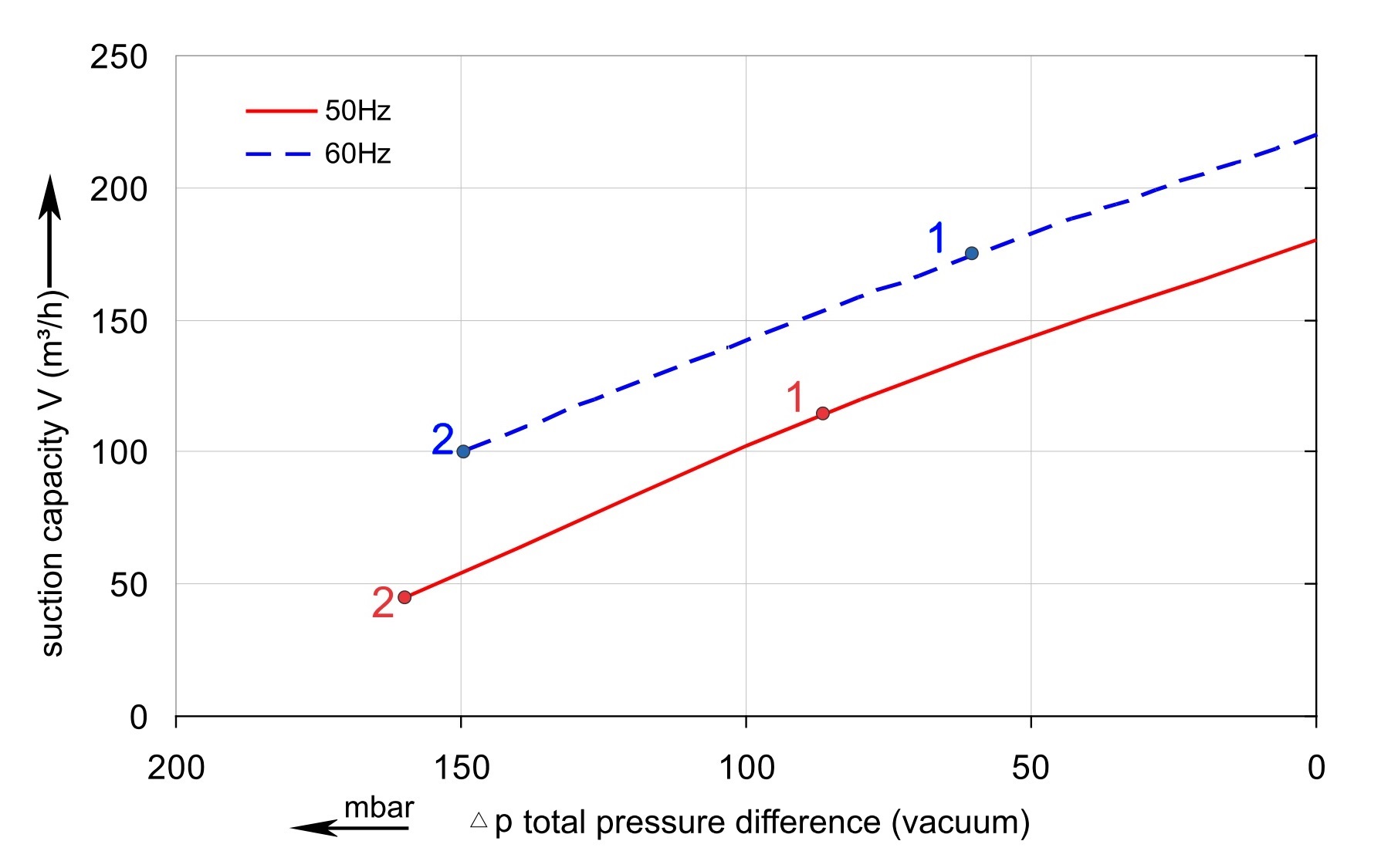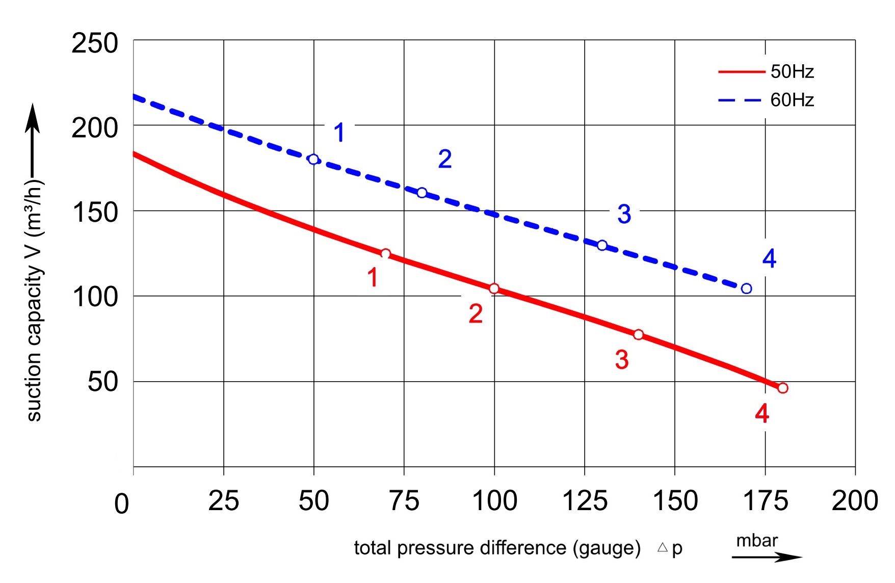 1 stufiger Seitenkanalverdichter mit folgenden technischen Spezifikationen bei 50 Hz: