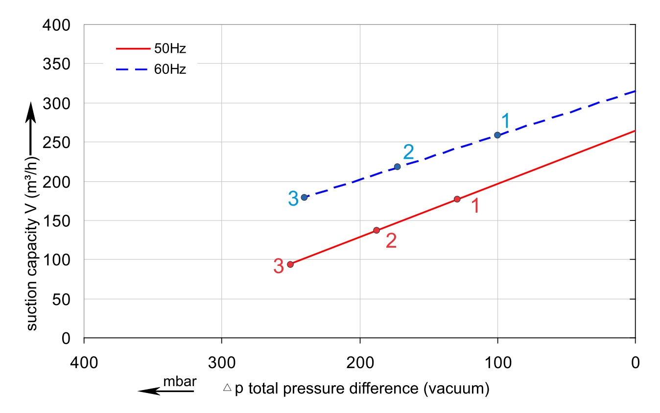 1 stufiger Seitenkanalverdichter mit folgenden technischen Spezifikationen bei 50 Hz: