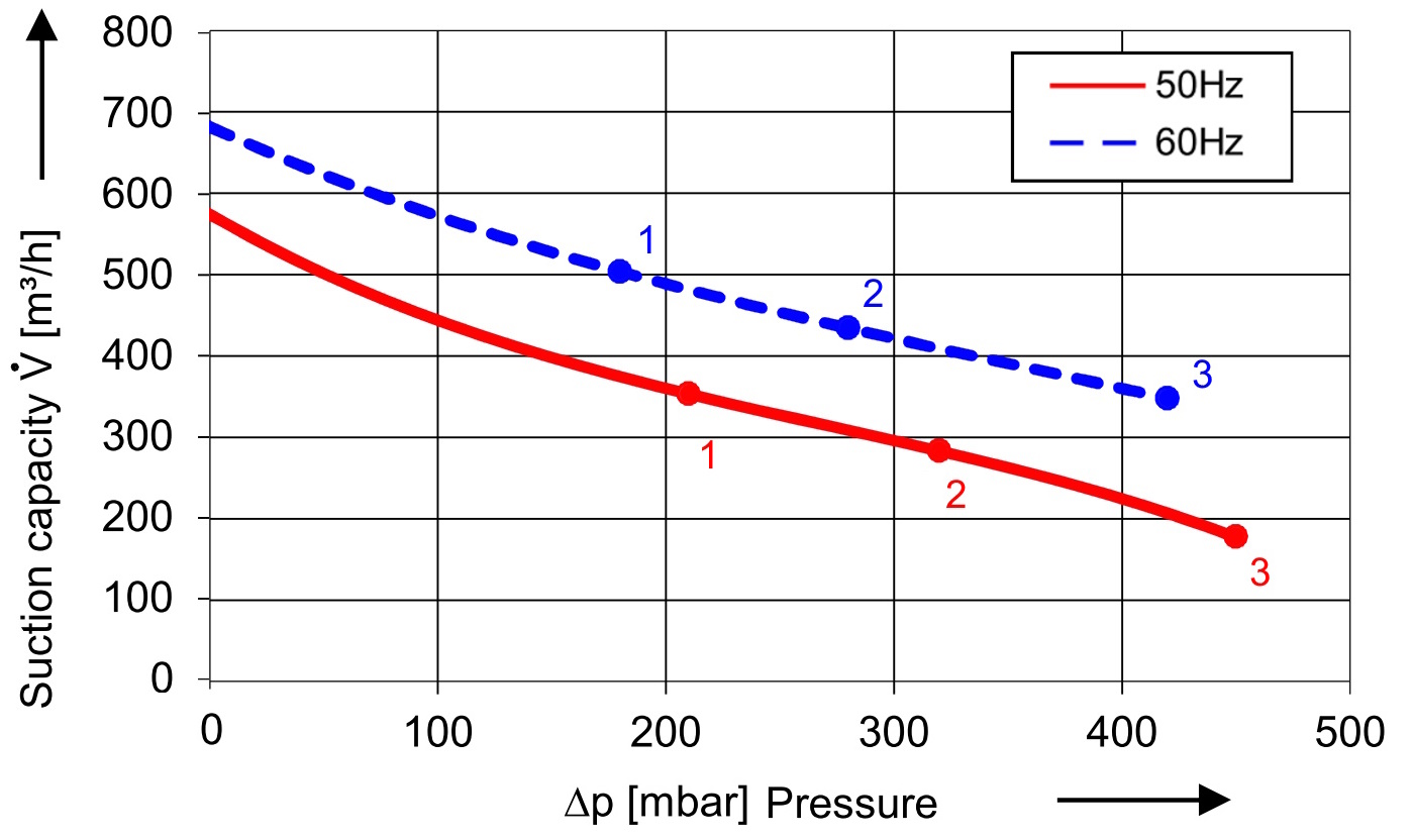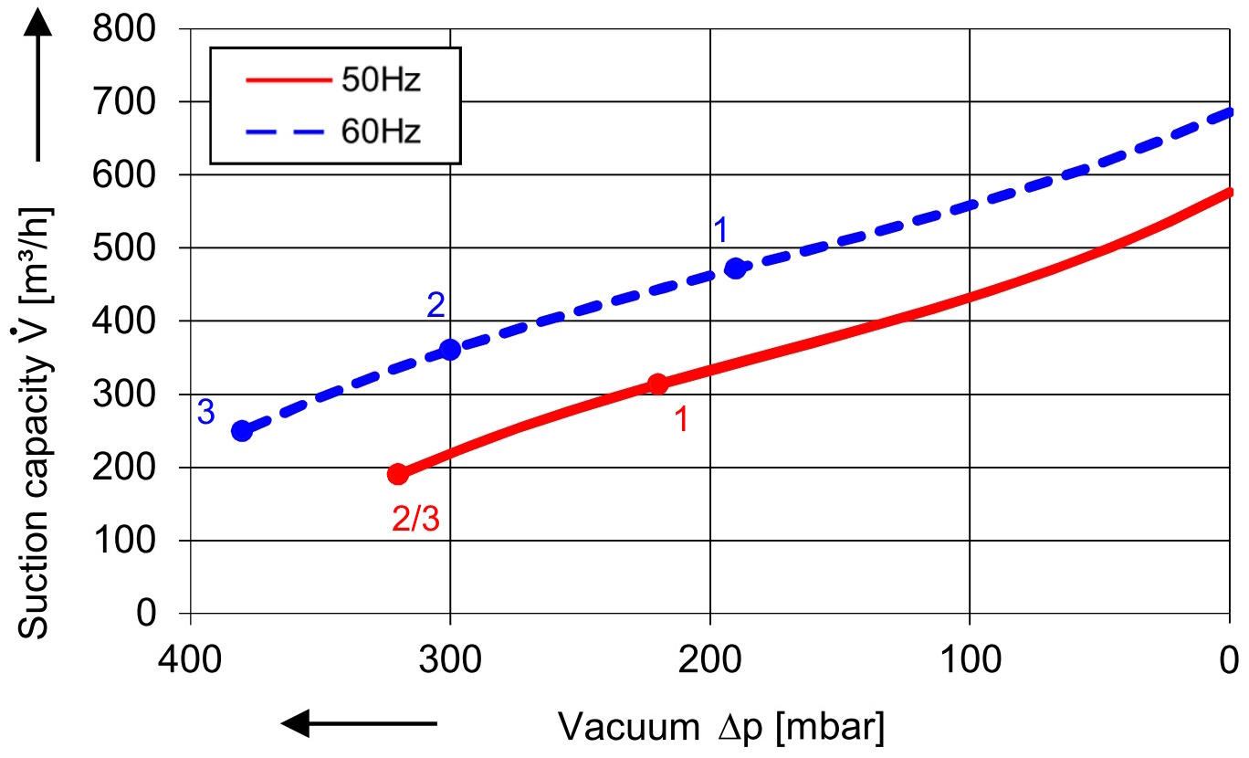 1 stufiger Seitenkanalverdichter mit folgenden technischen Spezifikationen bei 50 Hz: