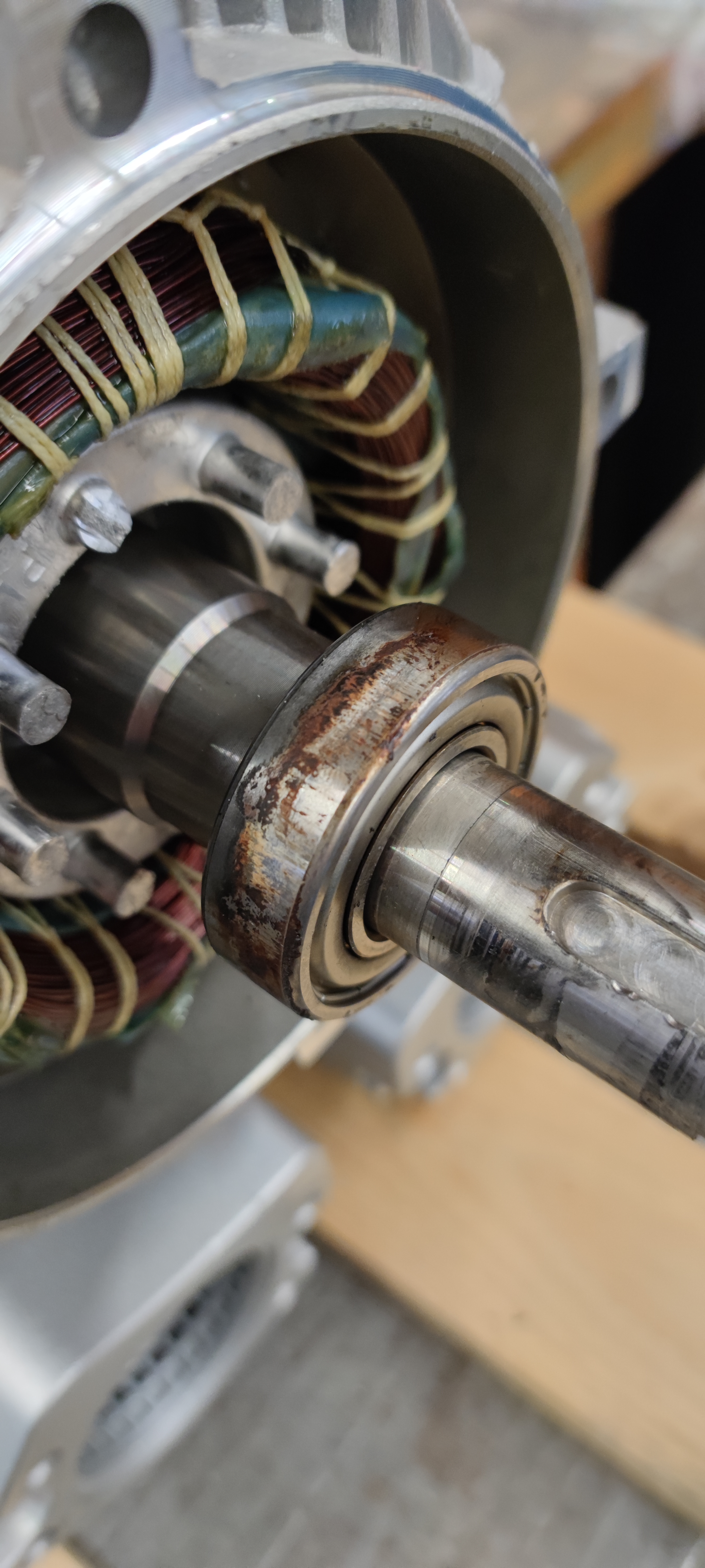 Wenn die Fehlströme groß genug sind eine ausreichend hohe Spannung aufzubauen, entläd sich diese schlagartig durch das Lagerfett und erodiert sowohl das Fett durch den Wärmeeintrag als auch die Kugellager.