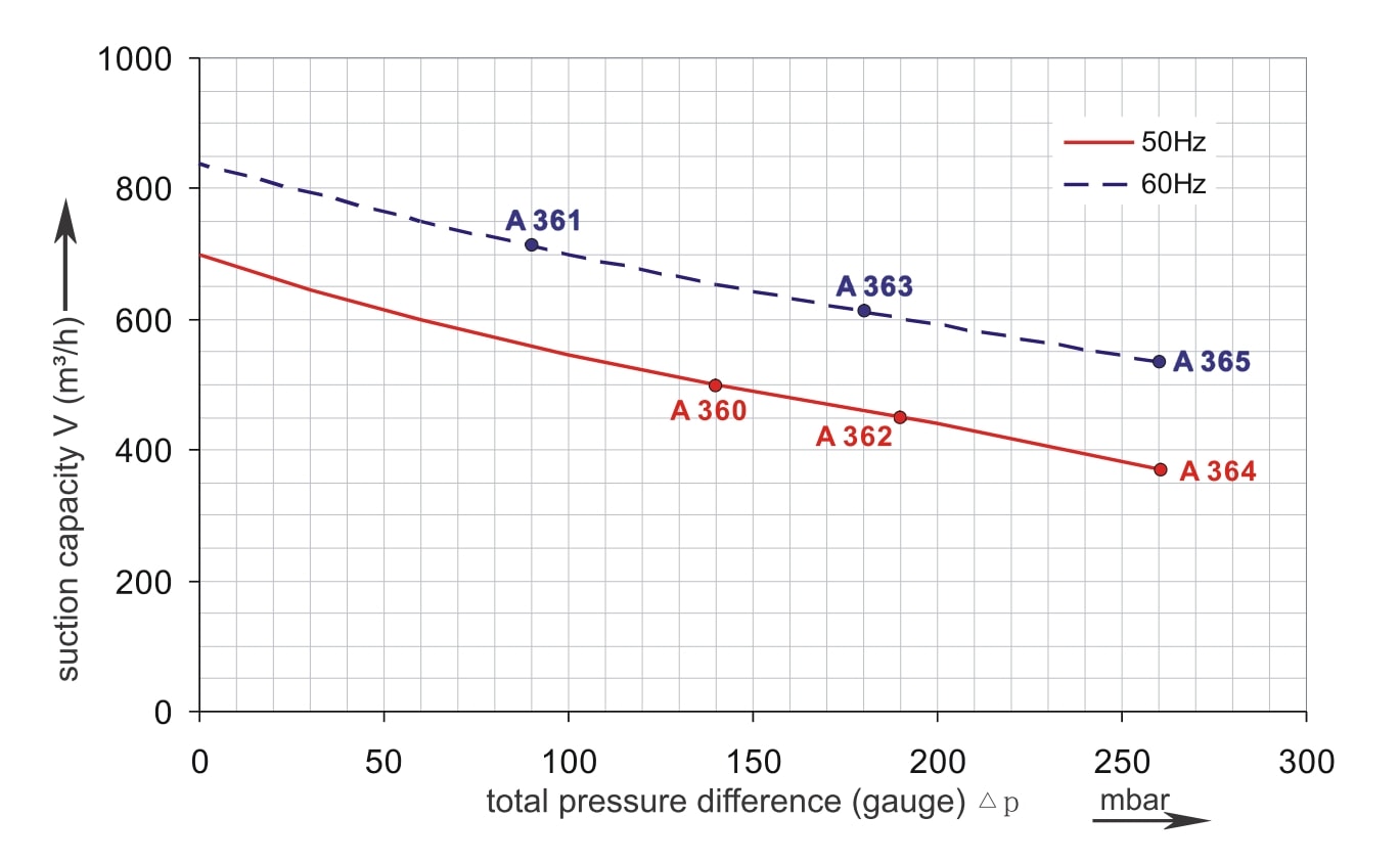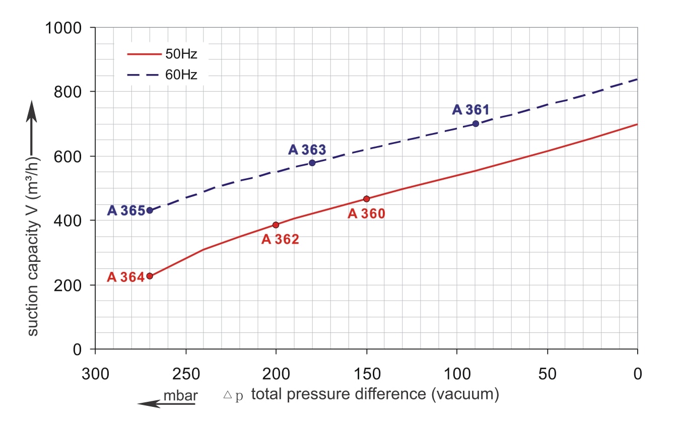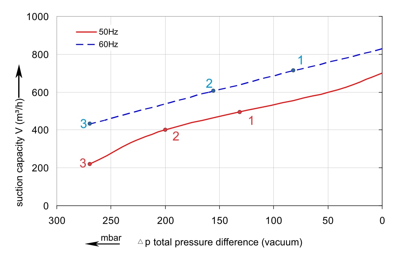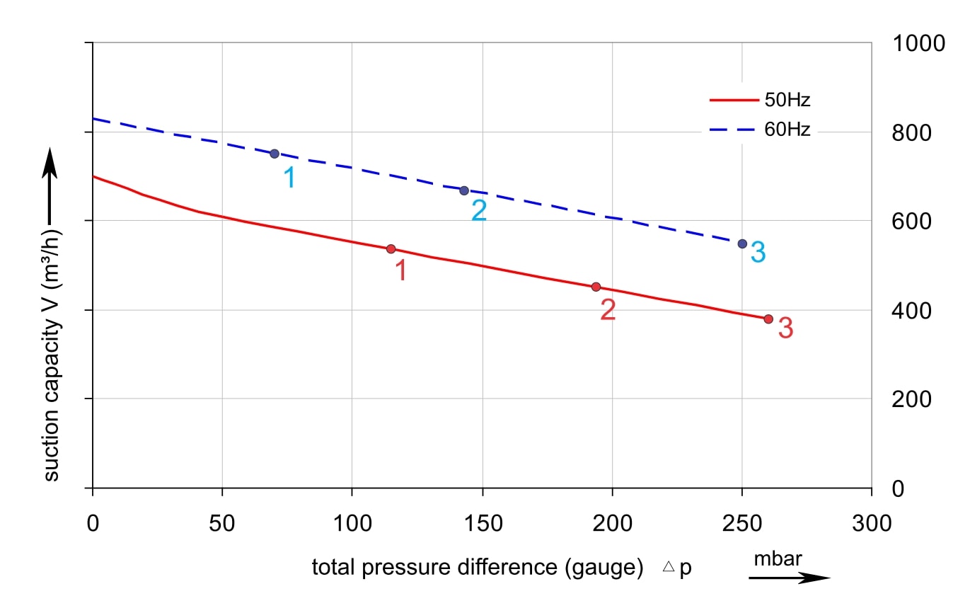 1 stufiger Seitenkanalverdichter mit folgenden technischen Spezifikationen bei 50 Hz: